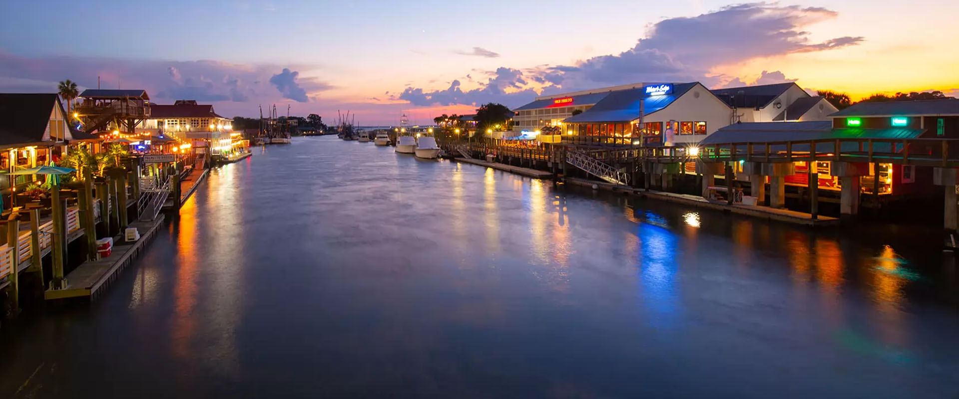 Water’s Edge is nestled along the picturesque Shem Creek in Mount Pleasant, South Carolina, just minutes from historic Downtown Charleston. Offering both waterfront and outdoor dining, guests can enjoy views of local fish and shrimp boats unloading their daily catches.